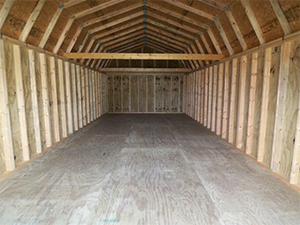 With an overhead loft, this sturdy construction provides ample room, making this the perfect solution for a workshop or large storage needs.
